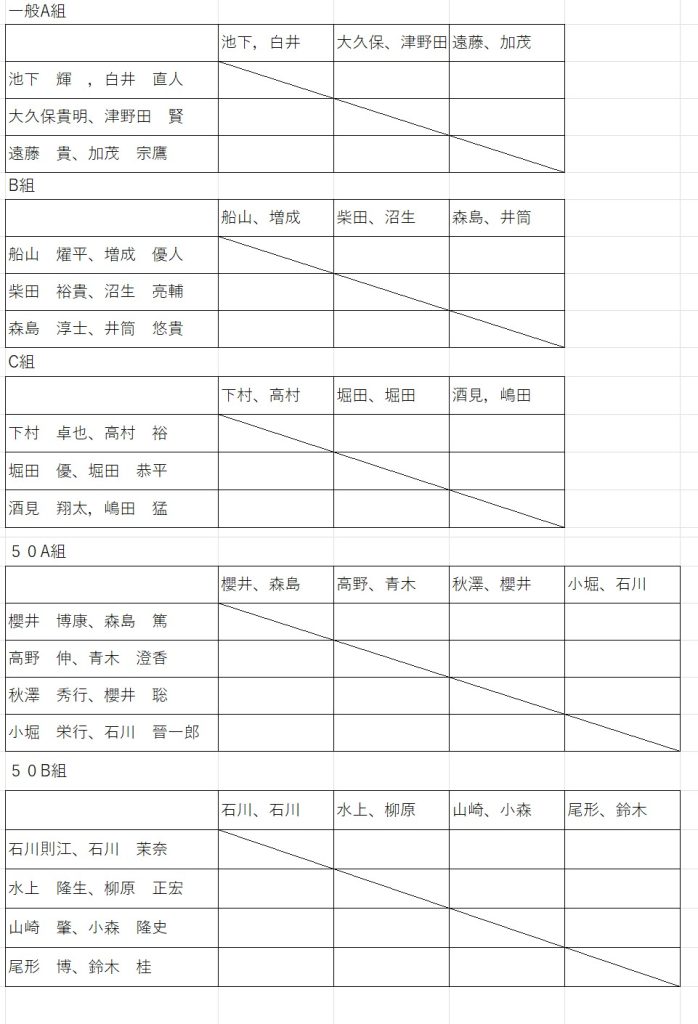 種目 ・一般 ・50歳以上(ペア共に50歳以上)
